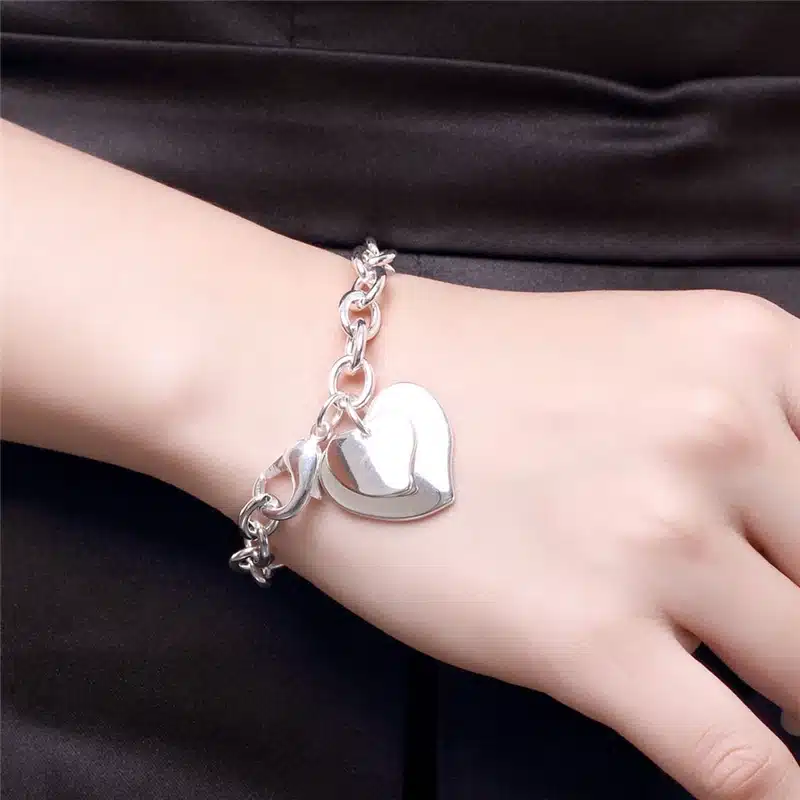 Ce bijou en argenté de qualité supérieure avec un pendentif double cœur est pour couple. Ce bracelet de couple restera beau et intact pendant de nombreuses années car l’argent sterling est reconnu pour sa durabilité et sa résistance à l’usure.