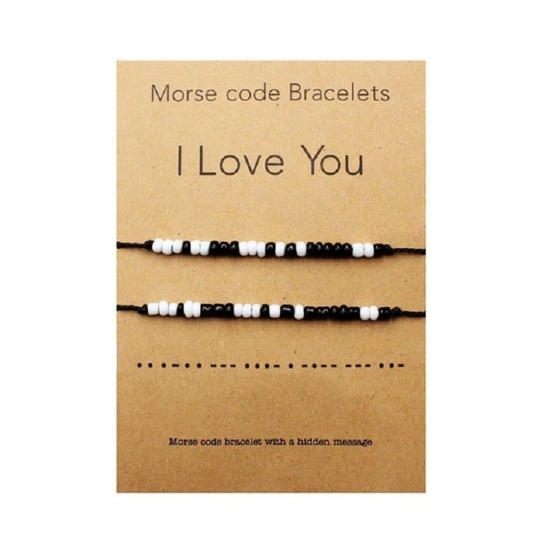Ces bracelets blanc et noir morse « I love you » pour amoureux sont des bijoux uniques en leur genre. Les perles noires et blanches sont disposées de manière à former les mots « je t’aime ». Les bracelets sont fabriqués avec des matériaux de haute qualité, assurant une durabilité et une élégance durables.