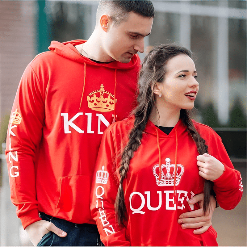 L’imprimé « King » et « Queen » sur ces sweats duo à capuche royal rouge symbolise votre lien unique avec votre partenaire. Il est idéal pour les escapades romantiques, les soirées au coin du feu ou les célébration saisonnière.